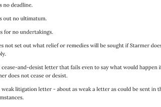 The litigation letter is weak, but his underlying practical position is not weak
