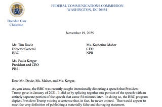 Trump v the BBC cont'd: an odd and desperate letter from the US media regulator