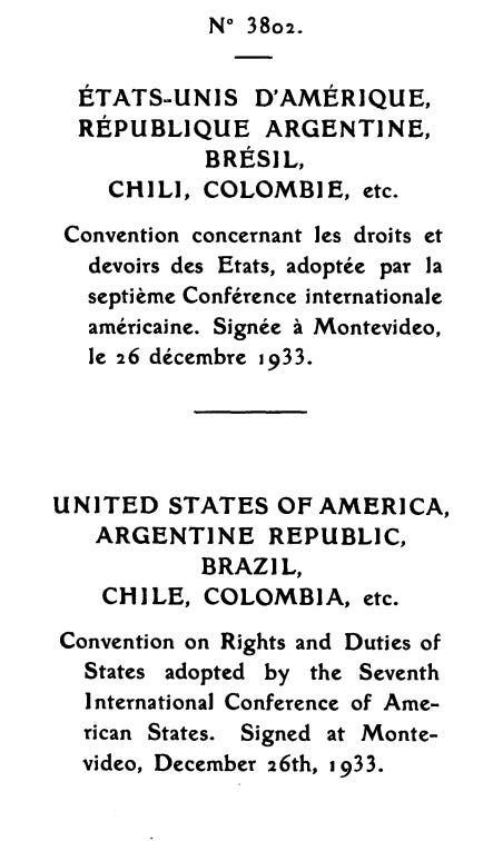 For them, the Montevideo Convention is central. They do not provide a date - it was signed in 1933 - nor do they state that the United Kingdom was not a signatory to the instrument.