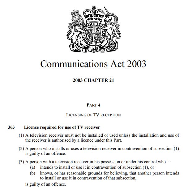 Of course, the BBC is not perfect, and nor is its ultimate legal method of funding, which relies on the criminal law and a prohibition on using television sets without a licence (ie, permission) from the state.