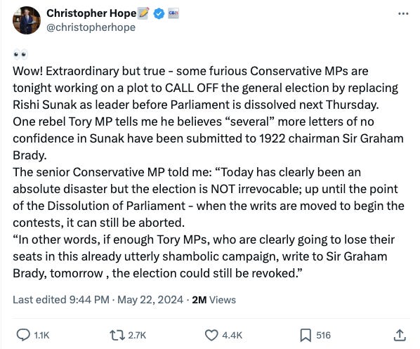 Another way for the general election to be un-called could be perhaps a judicial review going even further than “Miller II” - which merely quashed a prorogation - that attacked the very proclamation of a general election.