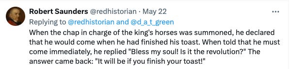 The historian and commentator Robert Saunders mentioned that in 1831 the following happened: