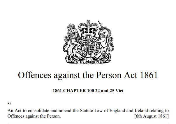 In respect of abortion, the key provisions currently in force are in this Victorian legislation, from 1861.