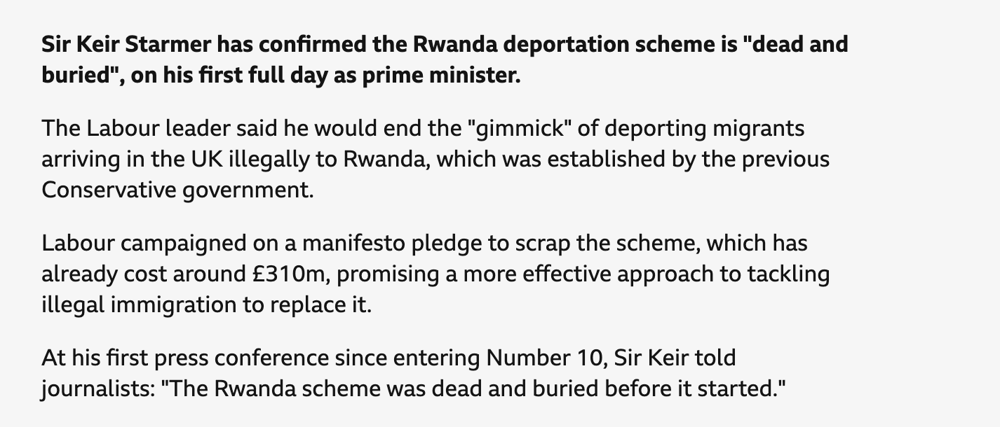 In July 2024, shortly after taking office, the UK Prime Minister announced that the MEDP was “dead and buried”.
