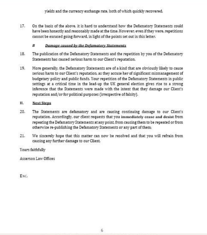 But the premise of the letter is an extraordinary widening of legal liability for political speech, catching many political speech-acts on social media and other published media which most be people would assume was part of their everyday free speech in criticising Truss for what she did with the economy.