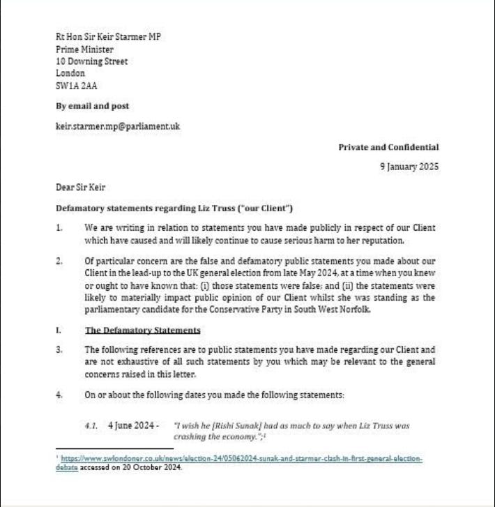 The post last week provided a quick close reading of the gloriously bad libel letter sent on behalf of the former Prime Minister Elizabeth Truss to the current Prime Minister Keir Starmer.